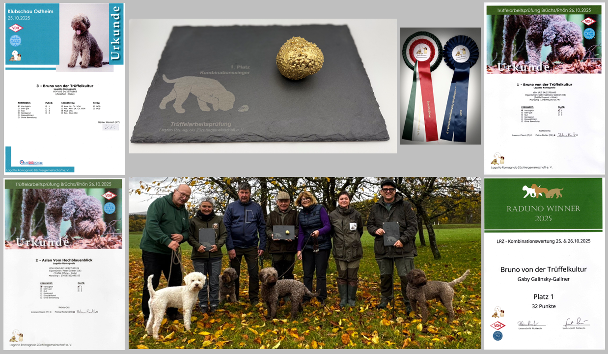 Ausstellung: V1 / CAC-VDH / CAC-Klub / BoB Trüffelarbeitsprüfung: V1 / CAC - Jugendklasse Kombinationswertung: Platz 1, 32 Punkte Raduno-Winner |